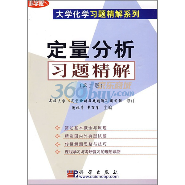 《定量分析习题精解(科学版)》是原《大学基础课化学类习题精解丛书》之《定量分析习题精解》的第二版。《定量分析习题精解(科学版)》共8章,涵盖 定量分析概论、各种化学分析法、吸光光度法、分析化学中的误差与数据处理及常用的分离和富集方法等。每章都有简要的内容提要,依据教学大纲,列出各章的基 本知识点、重点、难点;随后给出数十道精解例题,特别注意选择典型的,与重点、难点、知识点有关的例题。《定量分析习题精解(科学版)》内容安排由浅人 深,适当穿插解题分析和解题思路,并精选适量历届本科生期末考试试题、硕士研究生人学考试试题(皆有解答过程)及近年来国内外难度较大的综合例题。《定量 分析习题精解(科学版)》可作为综合性大学以及理工、师范、农林、医药院校等有关专业学生和硕土研究生备考者的参考教材,亦可供有关教师及分析化学工作者 参考。