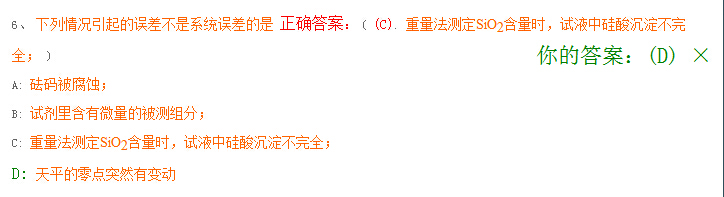 -回复:C选项应为系统误差,正确答案应为D,习题库已进行修正。
