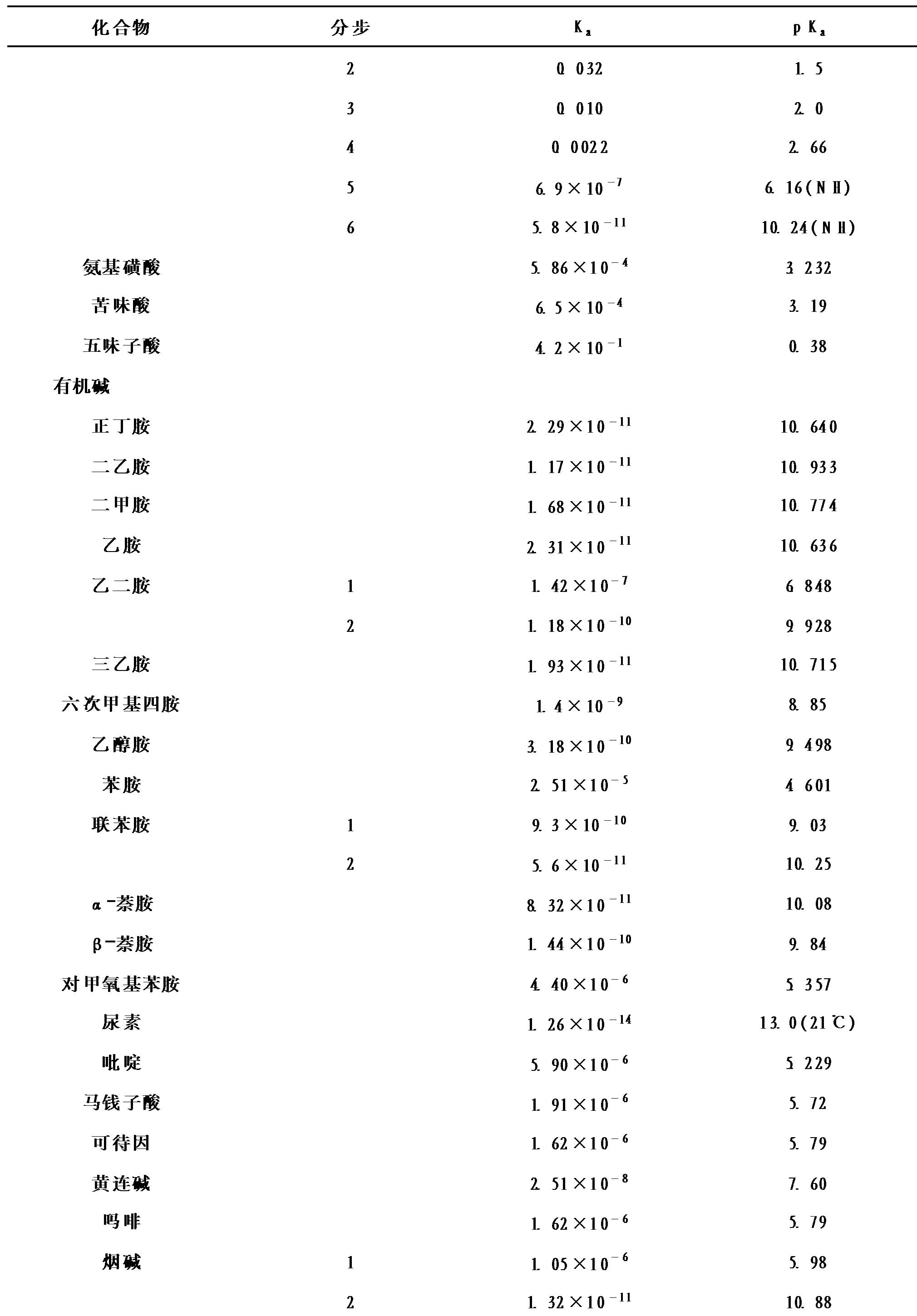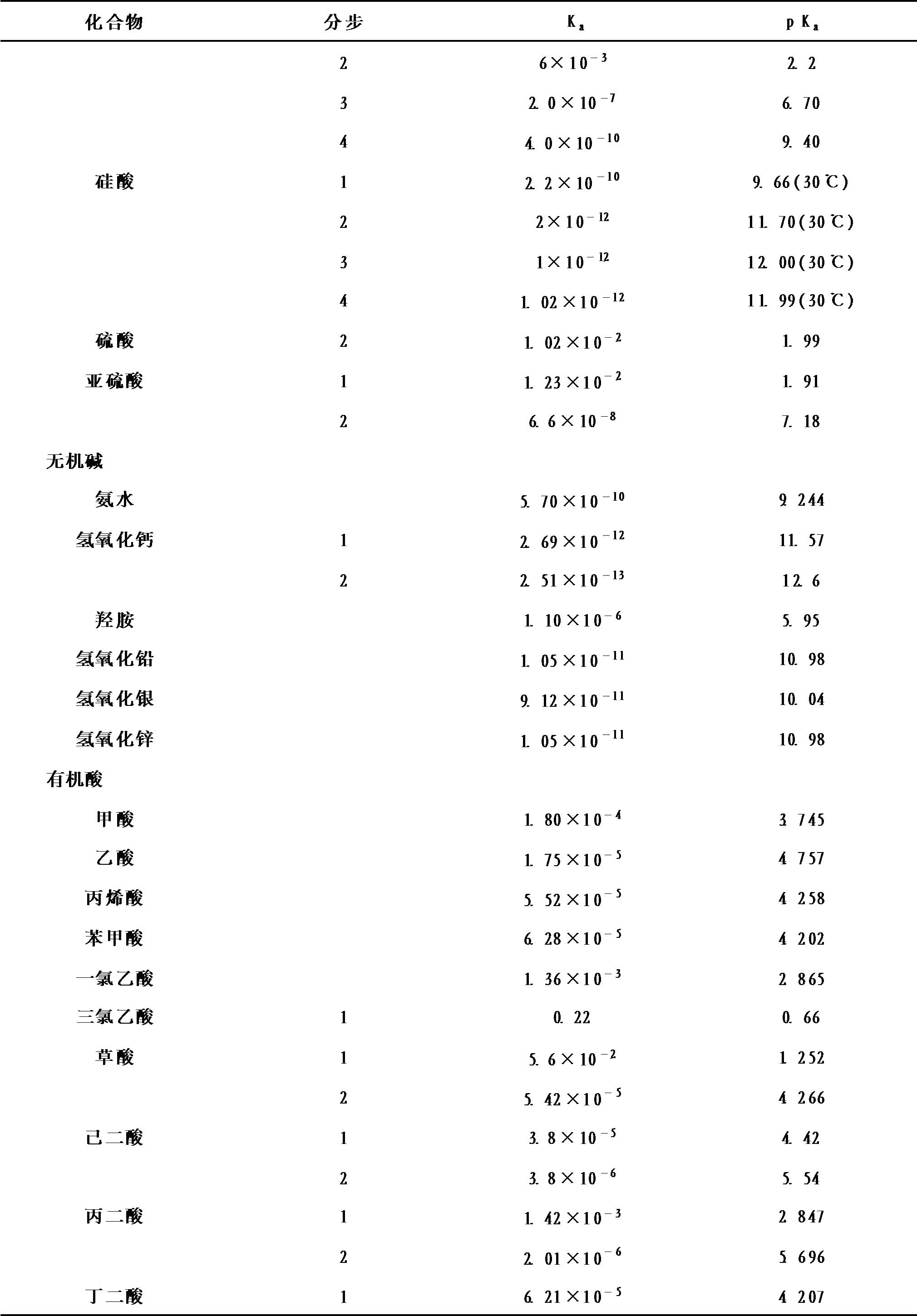 酸、碱在水中的电离常数