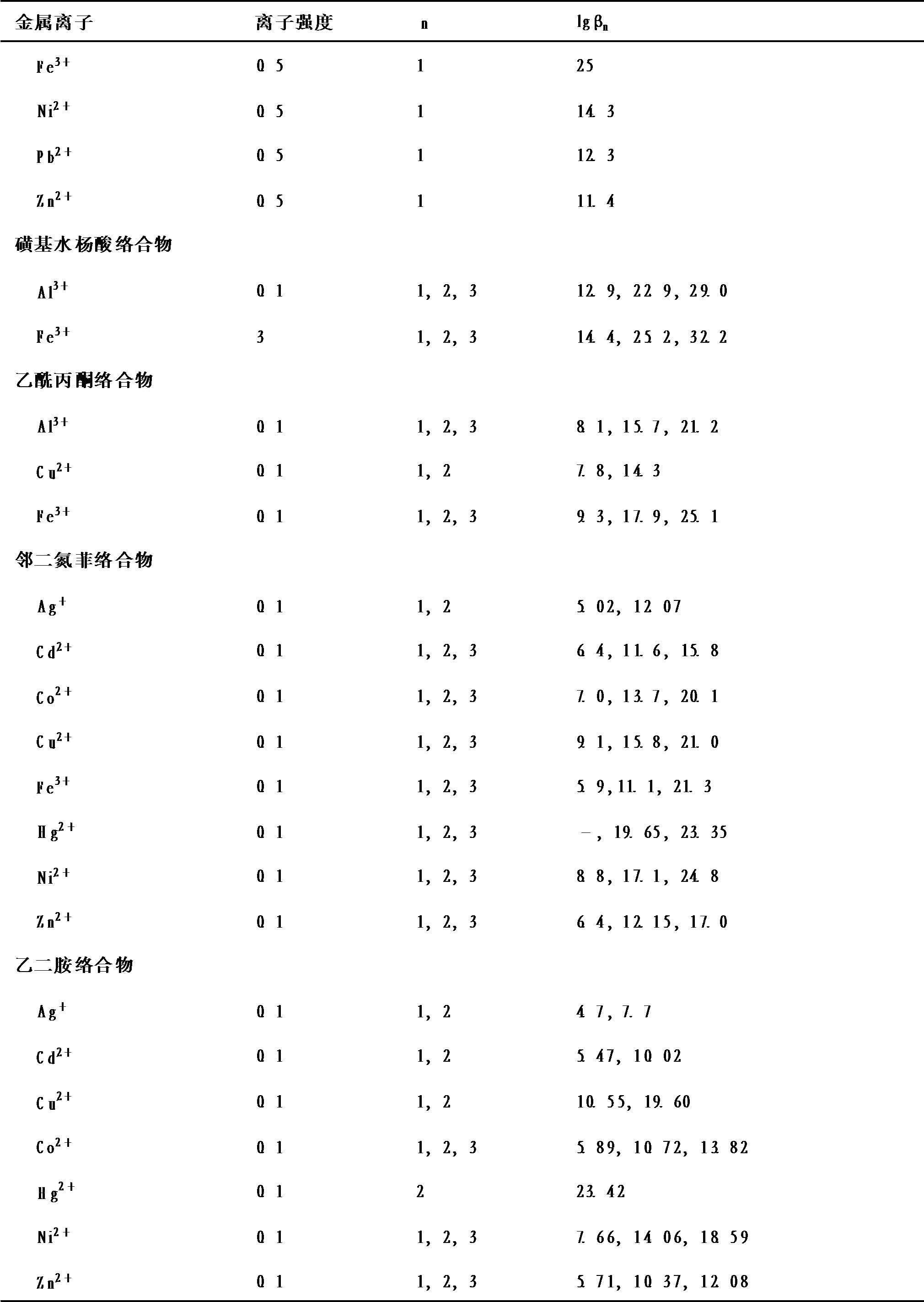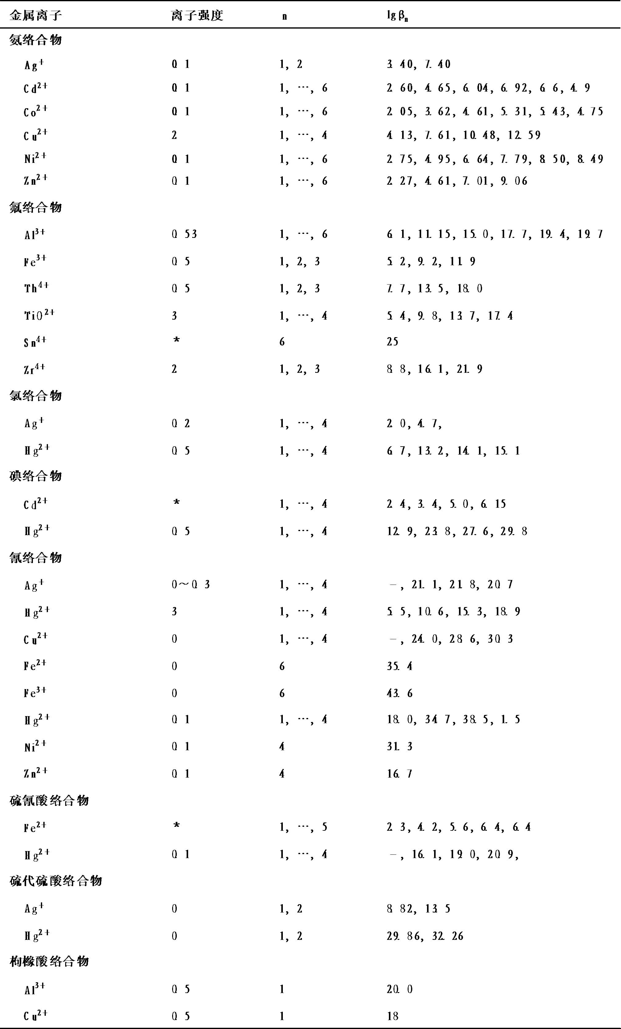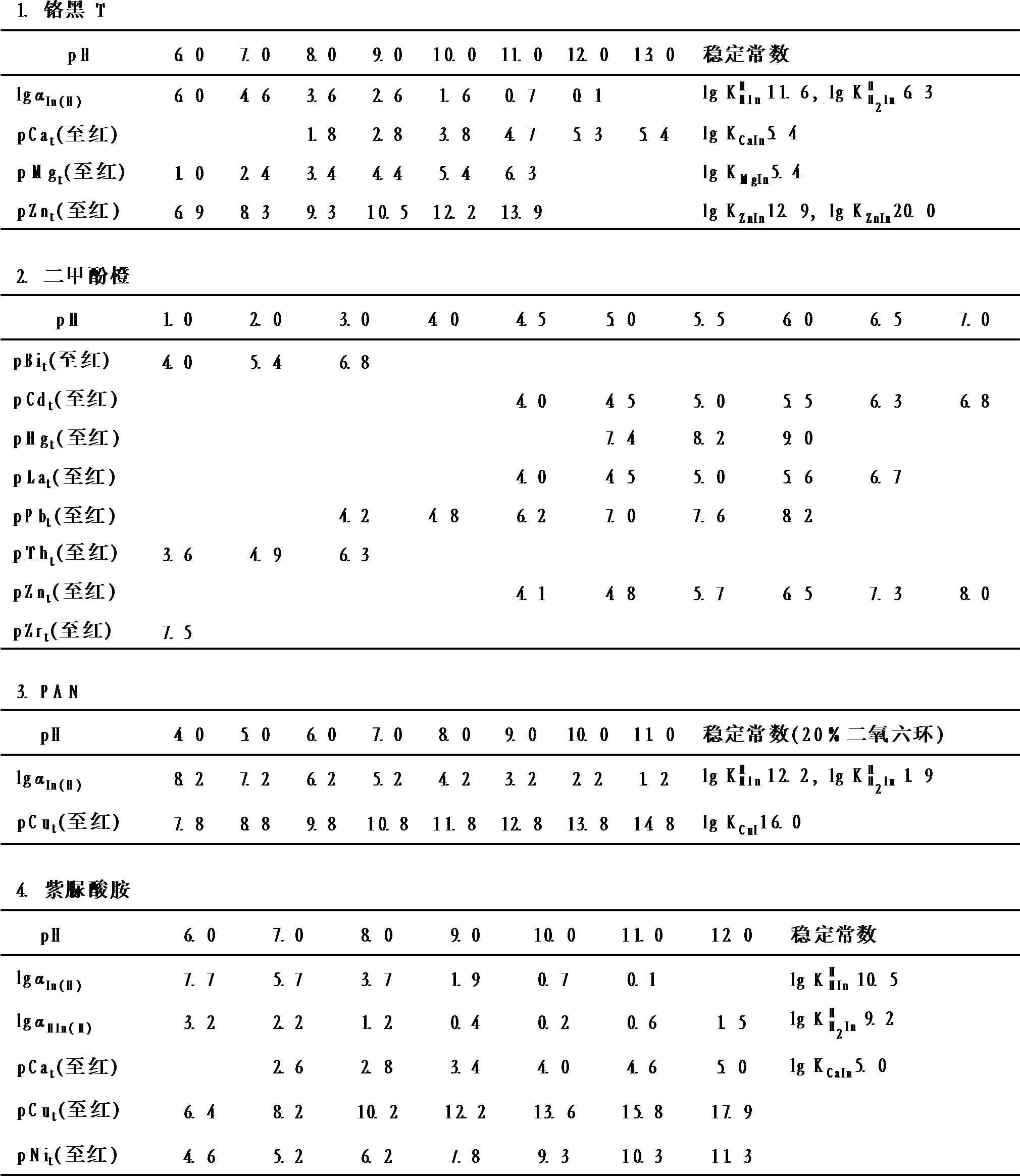 金属指示剂的lgαIn(H)值、pMt值及稳定常数