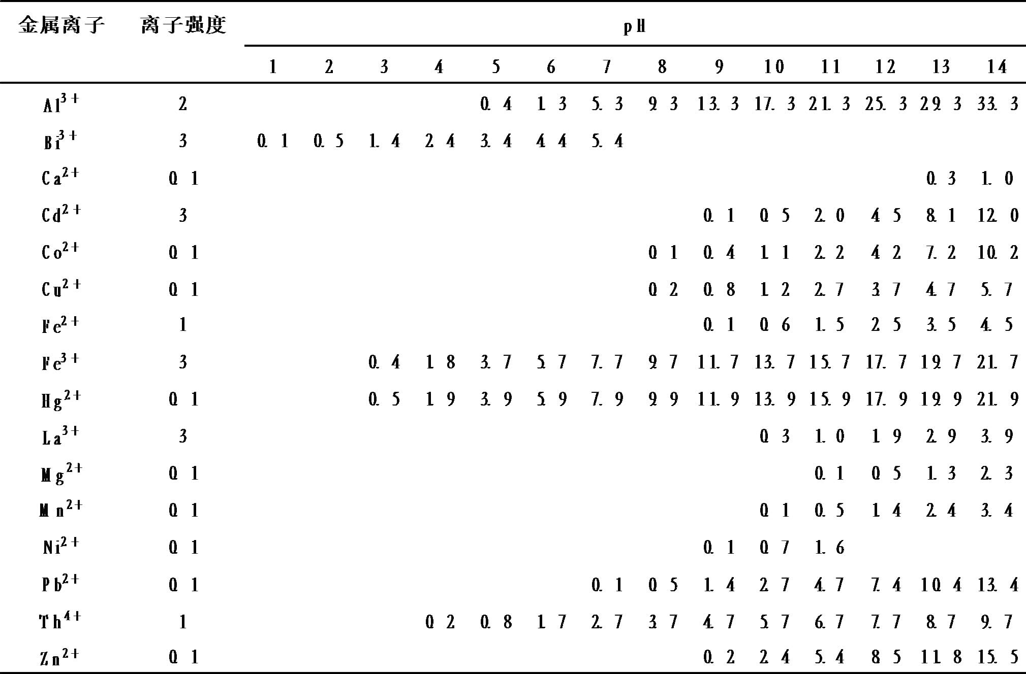 注:以上二甲酚橙与各金属的pMt均系实验测得。